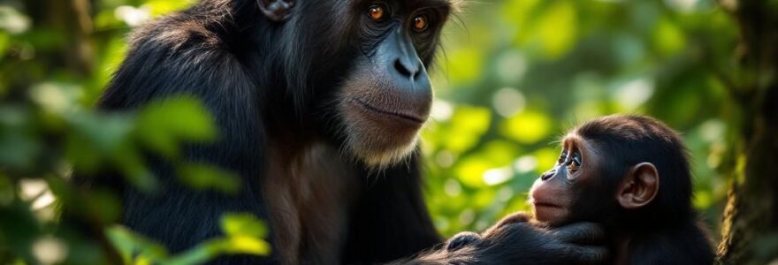 Le bonobo se distingue par des caractéristiques morphologiques particulières qui le différencient nettement de son cousin le chimpanzé commun. Cette espèce endémique occupe un territoire géographique très restreint en Afrique centrale, ce qui contribue à sa vulnérabilité.
